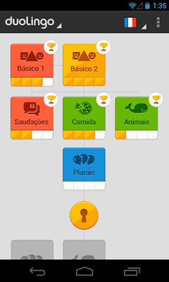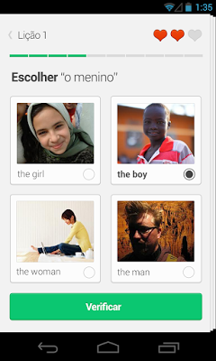 O app está totalmente em português e conta com vários idiomas para serem aprendidos. Comece do básico que você aprende no colégio até o ensino de nível universitário. Aprenda de um jeito muito divertido, a cada resposta errada você perde um coração, e se perde os três você tem que refazer a atividade. Ao concluir cada unidade você vai avançando e marcando seu progresso com cada conquista. Simplesmente o melhor aplicativo do gênero que eu já utilizei.