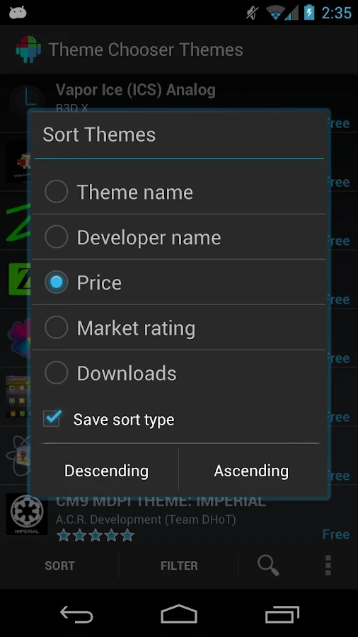 Pronto, o Theme Chooser já vai realizar a procura por temas para seu dispositivo.